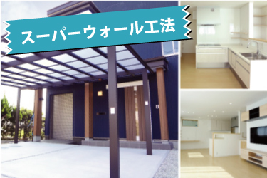 高断熱のスーパーウォール工法をはじめ、雨に濡れない大型天井のカーポート、手作りの造作棚など、暮らし易さを実現した住まい。